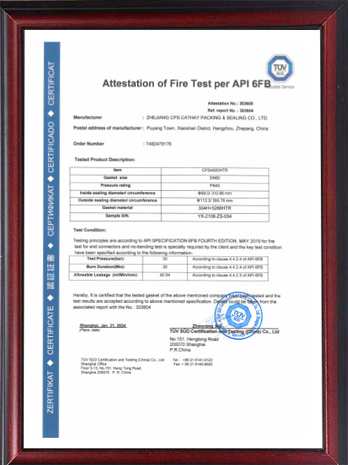 蛭石纏繞墊API6FB證書-TUV安全認(rèn)證-防火認(rèn)證