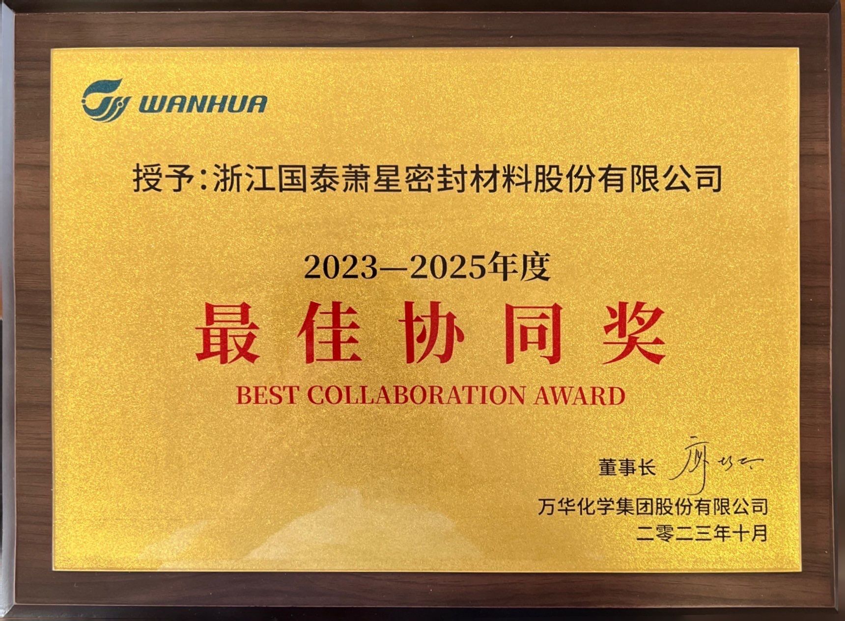 萬華化學(xué)最佳協(xié)同獎(jiǎng)