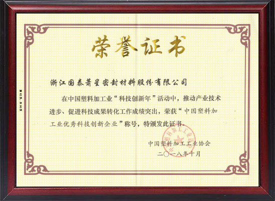 中國塑料加工優(yōu)秀科技創(chuàng)新企業(yè)