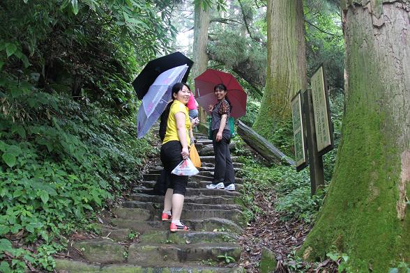 來到景區(qū),雨賦予了天目山更多的內(nèi)涵,云霧飄渺,宛如仙境。大家親眼目睹天目山峰戀疊翠,古木蔥蘢,奇巖怪石之險,流泉飛瀑之勝,不愧“大樹王國”“清涼世界”盛名,為古今攬勝頤神勝地。天目千重秀,靈山十里深,她賦予人類享之不竭的璀燦文化與獨特的大自然風(fēng)韻。幸運之星們置身于這有原始風(fēng)貌的山水之間,一路看倒掛蓮花一線天、四面峰、五世同堂、擁抱大樹王、過開山老殿、中峰塔院、經(jīng)半月池,充分領(lǐng)略這優(yōu)美的意境,舉目遠眺,滿山青翠,盡收眼底,真正體會到了心曠神怡的那種感受。