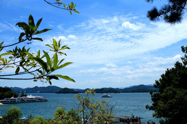午餐后,我們登上了梅峰島。“這里群島星羅棋布,港灣縱橫交錯,生態(tài)環(huán)境絕佳;尤其難能可貴的是,登上梅峰觀景臺,可以縱覽300余座大小島嶼,是目前千島湖登高攬勝的最佳去處”——導(dǎo)游的精彩講解,吊足了大家的胃口。同事們一口氣爬上了1000多個臺階的山間小道,抵達東觀景臺。放眼望去,近處青山滿目蒼翠欲滴,遠處一池清水里生長著座座靈秀的小島,更遠處白云朵朵,山風(fēng)陣陣吹來,讓人心曠神怡。