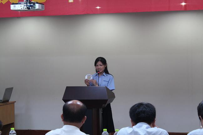 品管部鄭瓊從“1967年產(chǎn)的凍雞爪居然還在賣”的新聞引出產(chǎn)品質(zhì)量的重要性,希望“每一位國(guó)泰人都把我們的工作當(dāng)作事業(yè),始終把國(guó)泰的產(chǎn)品質(zhì)量放心中,用心的做好每一個(gè)產(chǎn)品,用心做好自己的本職工作”。