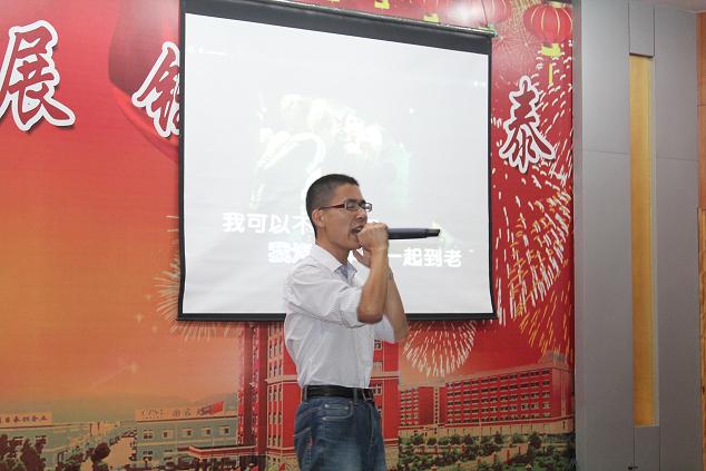 在主持人任大偉介紹了比賽規(guī)則后,生產(chǎn)部張銀平等人合唱了一首《中國人》,勁歌熱舞頓時讓現(xiàn)場“火熱”起來。四氟車間楊鳴以一首《星月神話》拉開了本次比賽的序幕。儲備干部任憲知帶來的英文歌曲《此情可待》、生產(chǎn)部董銀萍的《愛我的人和我愛的人》、盤環(huán)車間許道友的《不能這樣活》……一張張笑臉,一首首優(yōu)美的歌兒,一陣陣掌聲喝彩聲,現(xiàn)場頓時成了歡樂的海洋。專程返司參賽的技術(shù)中心王陳利帶來的是一首《趁早》,激情的旋律、富有磁性的聲音,將現(xiàn)場氣氛推向新的高潮。
